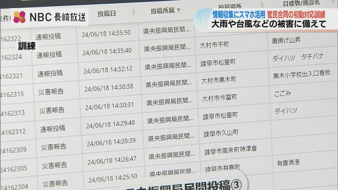 本格的な梅雨の大雨に備えた訓練です。大規模な災害が発生した際に官民合同で迅速な初動対応をとる体制作りの訓練が18日、長崎県諫早市で行われました。
