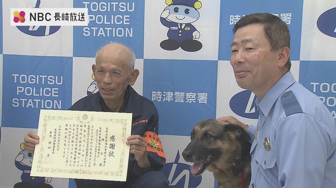 カールは先月13日、長崎市内の高齢者施設から行方不明になった女性の捜索活動に加わり、枕カバーのにおいをもとに捜索開始から1時間ほどで女性を無事発見。警察官の捜索では分からなかった民家敷地内の茂みに、女性は隠れるように倒れていたということです。