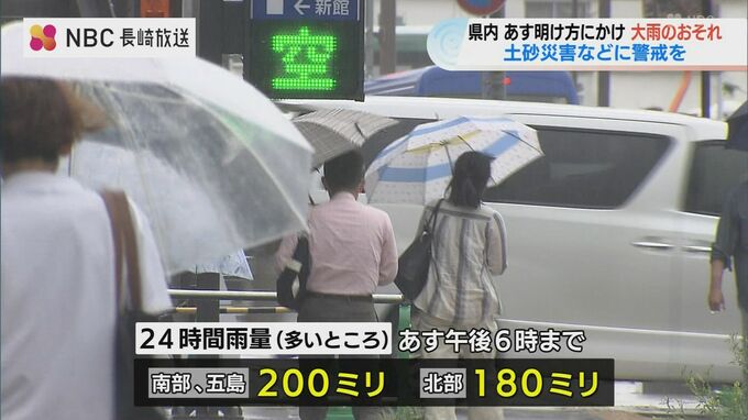 21日にかけて予想される1時間降水量は、多い所で長崎南部・北部・五島で70ミリ、21日午後6時までに予想される24時間降水量は、多い所で長崎南部・五島で200ミリ、長崎北部で180ミリとなっています。