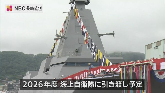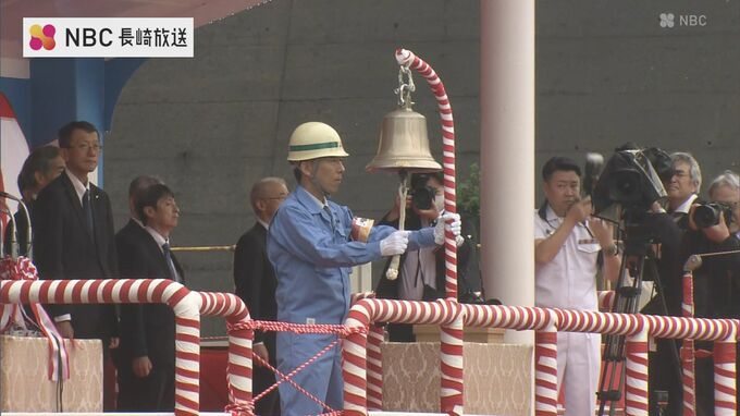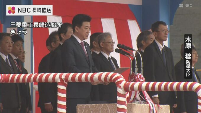 三菱重工長崎造船所で建造されている海上自衛隊の護衛艦の命名・進水式が、24日、行われました。