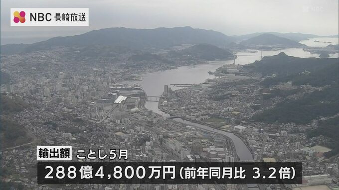 長崎県内の貿易統計5月は2か月ぶりに輸出超過 2024年6月26日(水) 11:55 国内 長崎県内の5月の貿易額は輸出額が輸入額を上回り、2か月ぶりに輸出超過となりました。長崎税関によりますと、県内の5月の輸出額は288億4800万円で前の年の同じ月と比べ3・2倍の伸びを見せました。貨物船をはじめと…