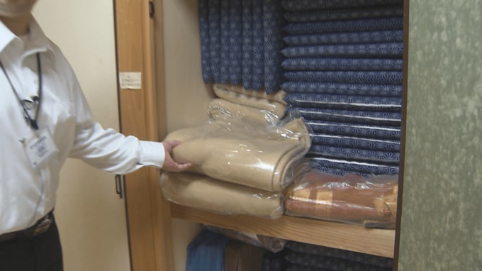 「こちらが最初に避難をしてもらう場所です。毛布類を置いています」