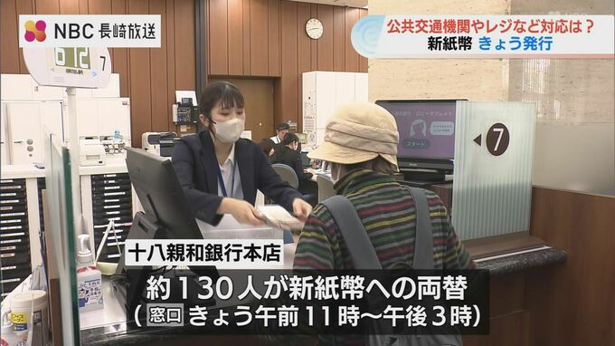偽造防止の強化などを目的に発行された紙幣は、1000円、5000円、1万円の3種類です。長崎市の十八親和銀行本店には3日午後3時までに約130人が窓口での新紙幣への両替に訪れました。