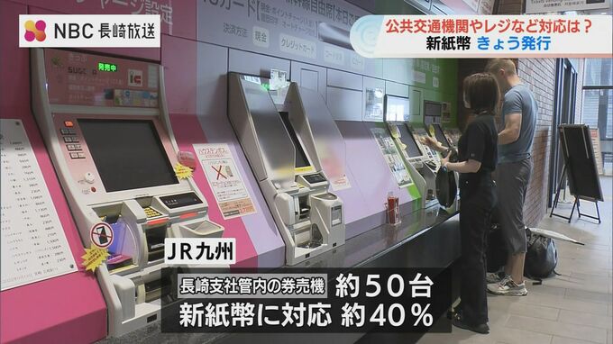 JR九州によると、長崎支社管内の券売機数はおよそ50台で、3日の時点で県内の券売機で新紙幣に対応しているのは、長崎駅等の利用客が多い駅を中心におよそ40%だということです。