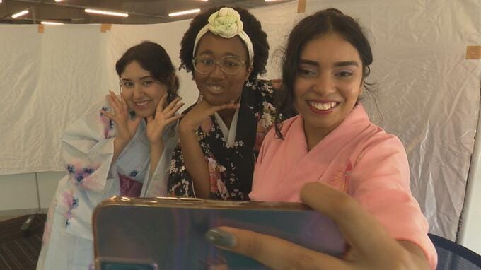 初めて浴衣に袖を通した留学生の感想は「ベリーナイス!」