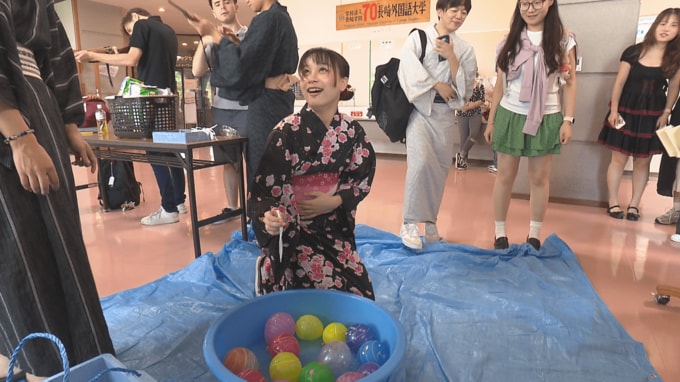 浴衣だけでなく、日本の夏祭りには欠かせない射的やヨーヨー釣りなども体験。中国から来た留学生は「日本の夏を感じた」、アメリカから来た留学生は「めっちゃ楽しかった。日本の文化を大事にしたい」と話していました。