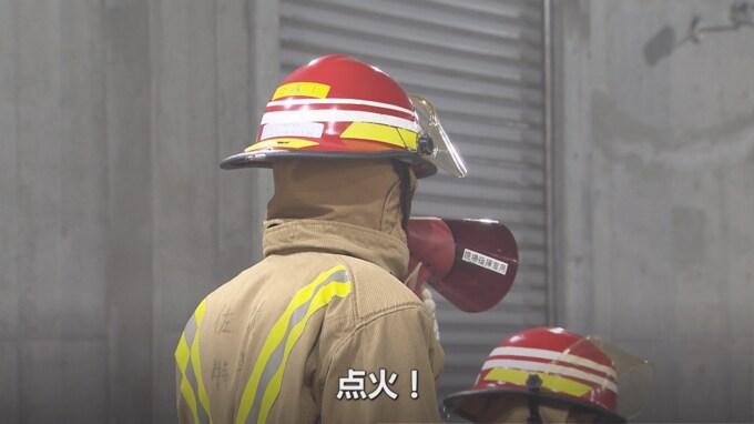 屋内にある演習場に入ってまず感じたのは独特の緊張感。おそらくそれは炎の恐ろしさを知り尽くした教官たちが醸し出す厳格さと、炎に向かっていく訓練生の緊張感から生まれてくるものだったのかもしれない。