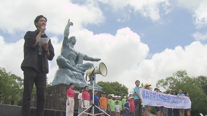 また、少年・少女合唱団による「長崎の鐘」が披露されたほか、七夕の短冊に平和への願いを記し、飾りました。