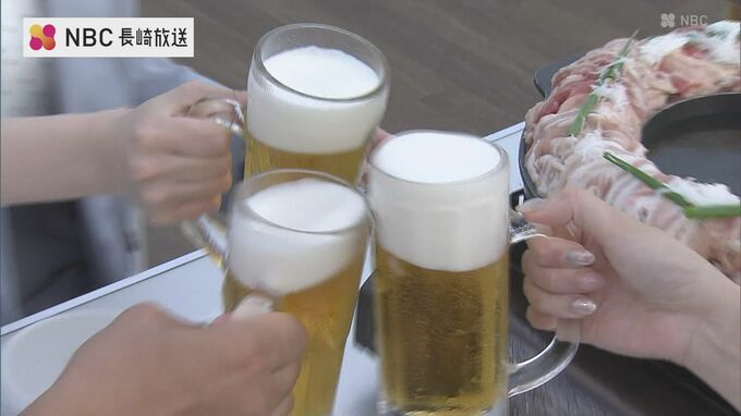 長崎市立山にあるホテル長崎のビアガーデンには8日夜、約60人が訪れ、夜風に当たりながらビールを楽しんでいました。