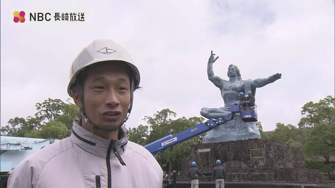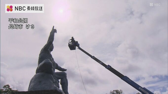 長崎市の平和公園では、来月9日の平和祈念式典を前に、10日午前から平和祈念像の清掃が行われています。