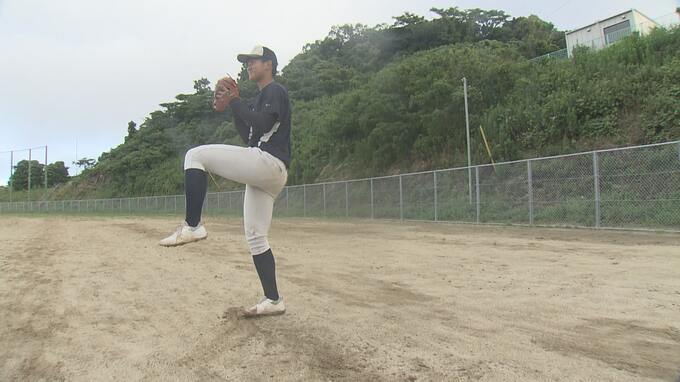 陣内投手は2年生ながら今年5月の長崎県大会で完全試合を達成。長いリーチから投げられるストレートが勝負球です。