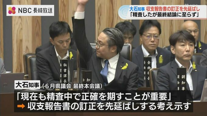 しかし、10日の長崎県議会最終本会議で、大石知事は「現在も精査中で正確を期すことが重要だ」として収支報告書の訂正を先延ばしする考えを示しました。