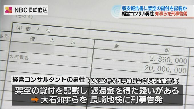 一方、知事選挙が行われた2022年の知事後援会の収支報告書に、架空の貸付を記載し返還金を得た疑いがあるとして、東京の経営コンサルタント会社の男性が10日、大石知事らを詐欺などの疑いで長崎地検に刑事告発しました。