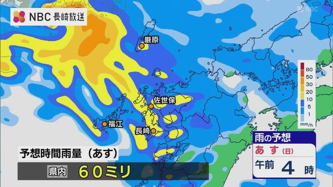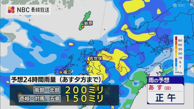 さらにあす夕方までの24時間に降る雨の量は多い所で、南部・北部で200ミリ壱岐・対馬、五島で150ミリとなっています。