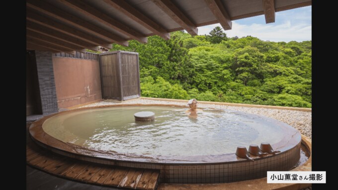 パノラマ露天「薫風の湯」につかり、愛用のライカで湯に包まれる自身の姿を撮影しました。