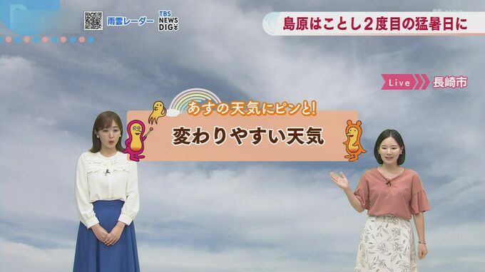 九州北部地方は、太平洋高気圧の周辺部となっており、南から暖かく湿った空気が流れ込み、大気の状態が非常に不安定となる見込みです。