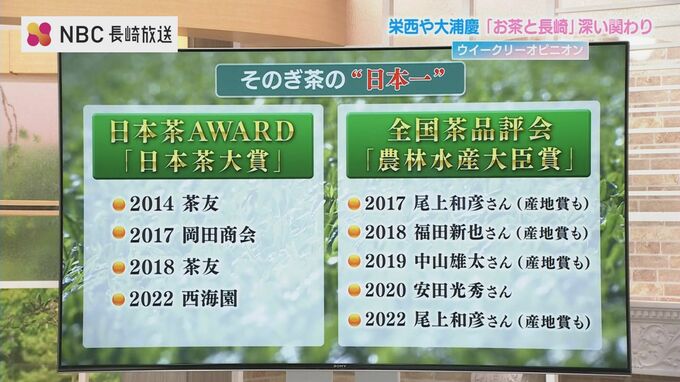 【平】そうですね。そのぎ茶は東彼杵町で生産されるお茶で、長崎県のお茶の生産量の6割を占めています。2014年以降のここ10年間で、「日本茶AWARD」と「全国茶品評会」という全国的な品評会で何度も日本一に輝いています。