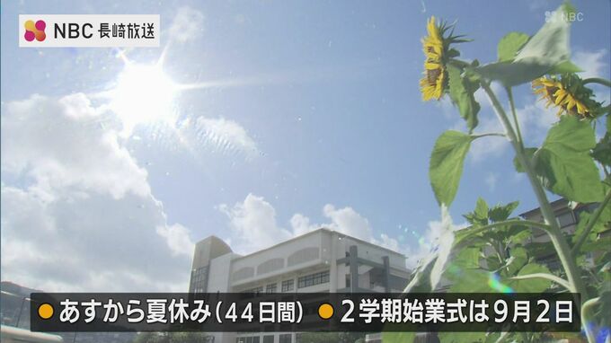 夏休みは44日間!ほとんどの小学校で終業式【長崎市】 2024年7月19日(金) 12:16 国内 19日、長崎県内ほとんどの小学校で、1学期の終業式が行われました。全校児童233人の長崎市の稲佐小学校です。岡田政宏校長は、『夏休みは興味があることにとことん取り組んでほしい』と挨拶。児童代表の2人が1学期…