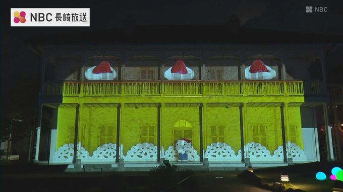 グラバー園ではハローキティとコラボしたプロジェクションマッピングなどの夜のイベント「明治夜宴」が始まりました。