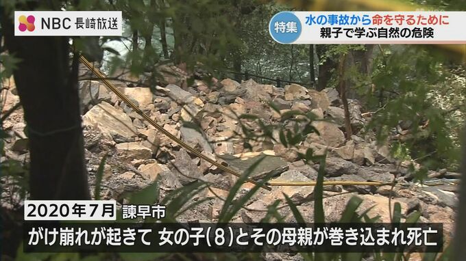本の中には長崎での事故も掲載されています。2020年7月長崎県諫早市の轟峡でがけ崩れが起きて8歳の女の子と母親が巻き込まれて死亡しました。