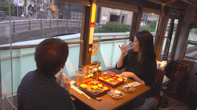 祖母と訪れた女性「電車の中もこういう雰囲気になってるって初めて知ったので、お酒と一緒に楽しんでいます。ほかの人にも勧めたいです」