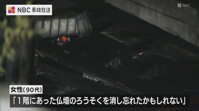 女性が「1階にあった仏壇のろうそくを消し忘れたかもしれない」と話しているということで警察と消防が、出火原因などを調べています。
