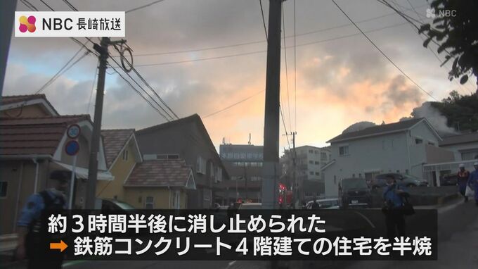 警察と消防によりますと、およそ3時間半後に消し止められましたが、鉄筋コンクリート4階建ての住宅が半焼しました。