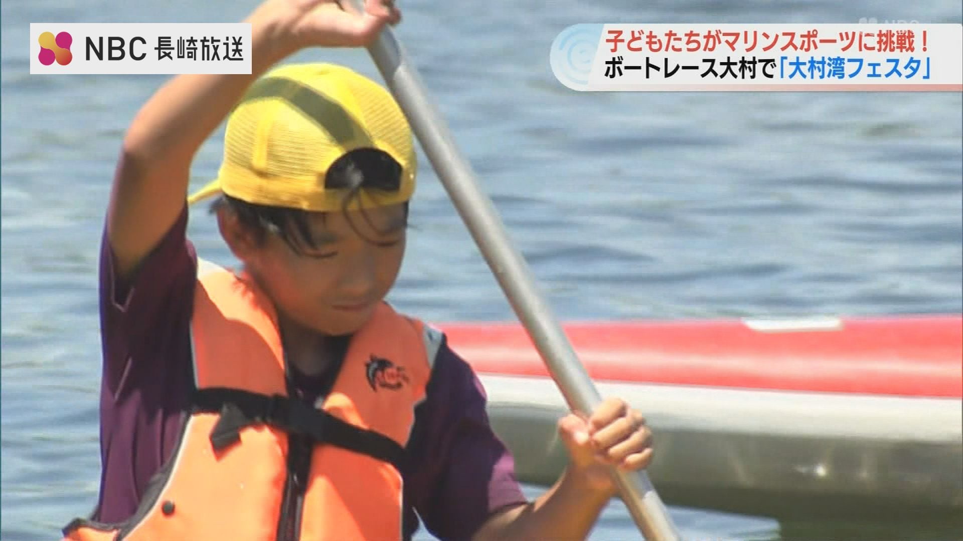 連日厳しい暑さが続く中、長崎県大村市ではボートレース場内の海で子どもたちがマリンスポーツを楽しむイベントが開かれました。