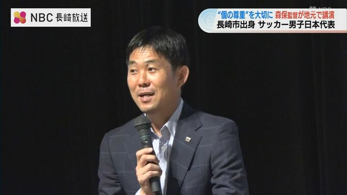 サッカー男子日本代表の森保一監督が、スポーツの楽しさなどをテーマに地元長崎市で講演会を開きました。