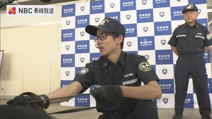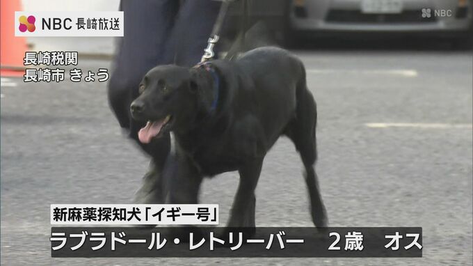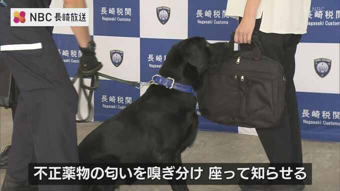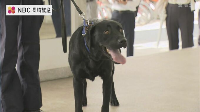 6日、長崎市の長崎税関で新たに配属された麻薬探知犬の就役式が行われました。