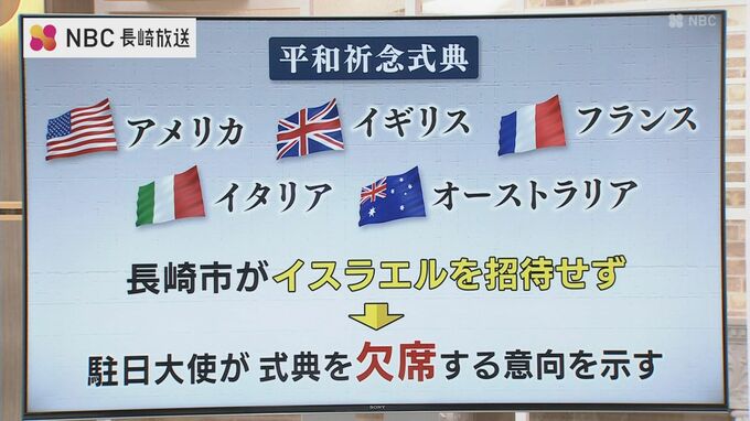 なお、式典への参列をめぐっては、長崎市がイスラエルを招待しなかったことを理由に、核保有国のアメリカ、イギリス、フランスのほか、イタリア、オーストラリアの少なくとも5か国の駐日大使が式典を欠席する意向に示していて、