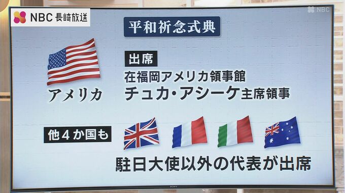 長崎市によりますと、アメリカからは福岡の首席領事が、その他4か国からは駐日大使以外の代表が出席するとの連絡が市に対して入っているということです。(7日時点)