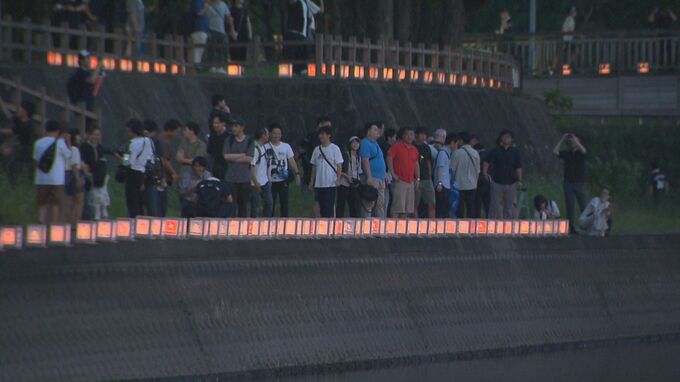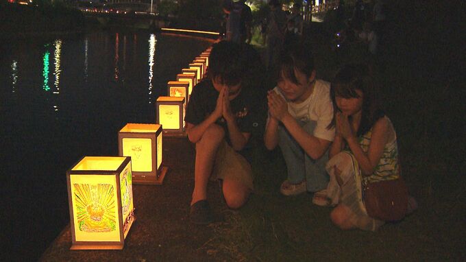 9日夜は、平和のメッセージが書かれたおよそ700個の灯篭が川辺に並べられ浦上川を優しく照らしました。