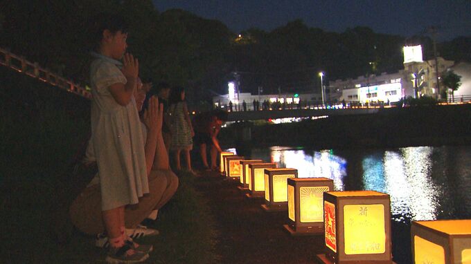 長崎原爆の日の8月9日、爆心地近くを流れる長崎市の浦上川では、被爆者への慰霊を込めて「万灯流し」が行われました。
