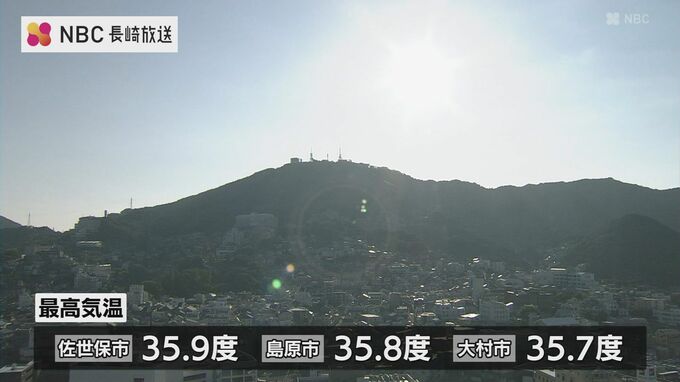 長崎県内の11日の最高気温は、佐世保市で35.9度、島原市で35.8度、大村市で35.7度を記録するなど各地で猛暑日となりました。この暑さで、県内では熱中症とみられる症状で7人が病院に搬送され、うち2人が中等症と診断されました。12日も長崎市では日中の最高気温が35度まで上がる予想で、気象庁などは県内に「熱中症警戒アラート」を出しこまめな水分補給など対策を取るよう呼びかけています。
