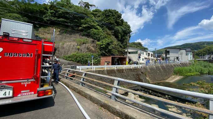 消防によりますと12日午後1時20分頃、長崎市三川町で「屋外にある家電の様なものから火が出て、付近の倉庫や建物、山手に燃え移っている」との通報がありました。