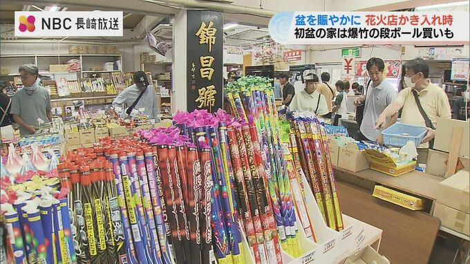 長崎のお盆に欠かせないものと言えば花火。長崎市の花火店は墓参りや精霊流しで使う花火を買い求める人で賑わっています。