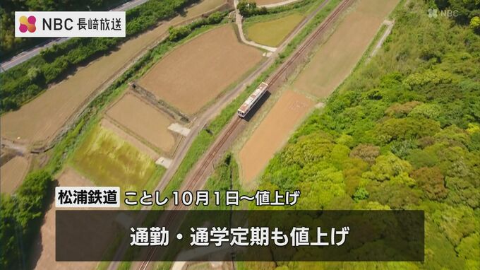 松浦鉄道によりますと今回値上げの対象となるのは佐世保~有田間93.8キロメートルの区間で最低料金が現在の170円から200円となるなど区間内で平均18.8%値上げされるほか通勤・通学定期も今年10月1日から値上げされます。