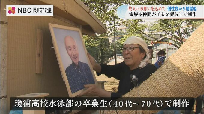 15日朝、長崎市西山の公園に集まったのは瓊浦高校水泳部のOBたちです。作るのは水泳部の初代顧問でことし3月に亡くなった中尾武さんを送る船。社会科の教員で、長崎市水泳連盟の理事長も務めていました。