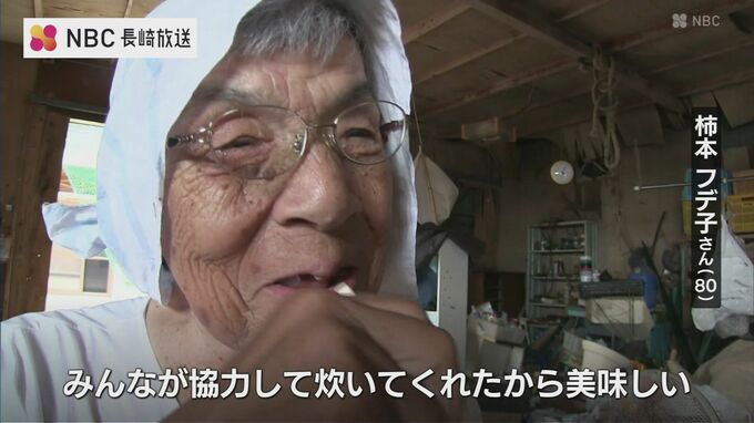柿本 フデ子さん(80):「スッキリしました。さっぱりしてね。みんなが協力して炊いてくれたから美味しい」
