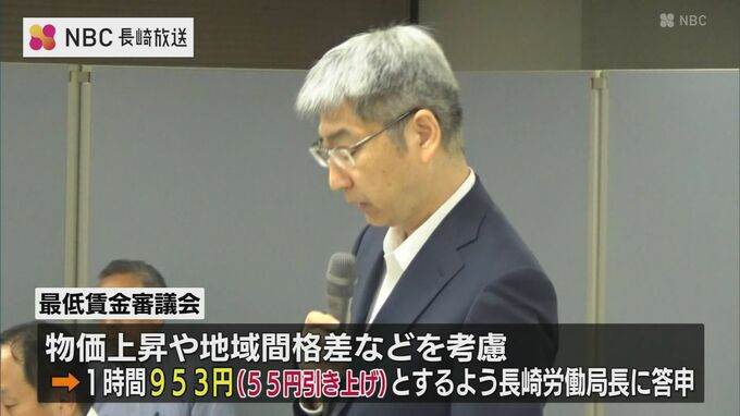 物価上昇や地域間格差などを考慮した結果、最低賃金を55円引き上げ、1時間953円とするよう、16日、長崎労働局長に答申。