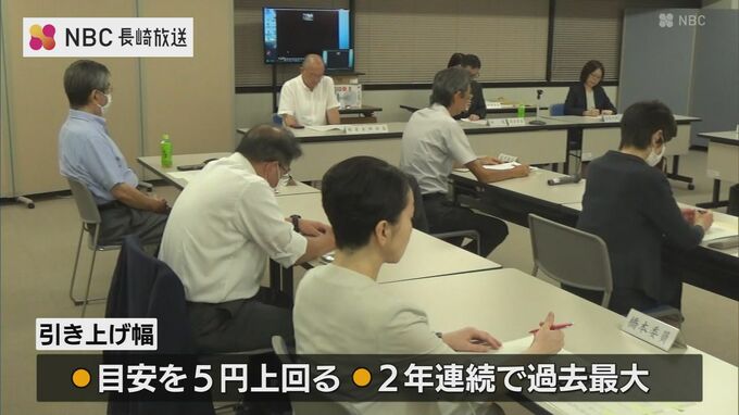 全国最低レベルが続く長崎県内の最低賃金について、長崎地方最低賃金審議会は、16日、過去最大の上げ幅となる55円引き上げ、1時間953円とするよう、長崎労働局長に答申しました。