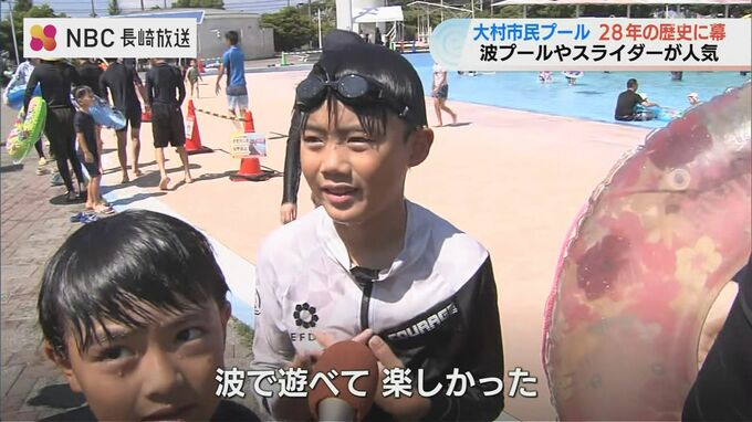 「大村市民プール」は、大村市役所の新庁舎建設や施設の老朽化を理由に26日で、28年の歴史に幕を降ろしました。「流れるプール」や飛び込みプール直下型の「スライダー」などが人気で、最終日には多くの親子連れで賑わいました。