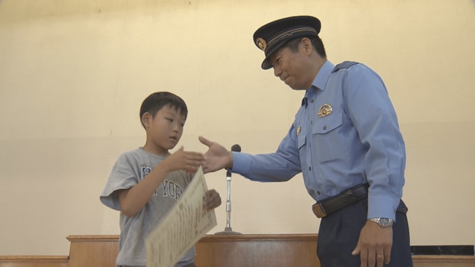道に迷っている高齢女性を助けた小学4年生の男子児童に、小学校の始業式で警察署の署長から感謝状が贈られました。