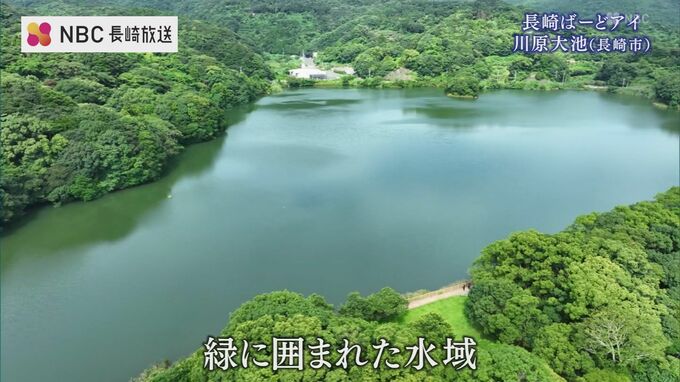 ふるさと再発見「長崎ばーどアイ」。長崎市野母半島にある県内最大の淡水池「川原大池」の空中散歩です。