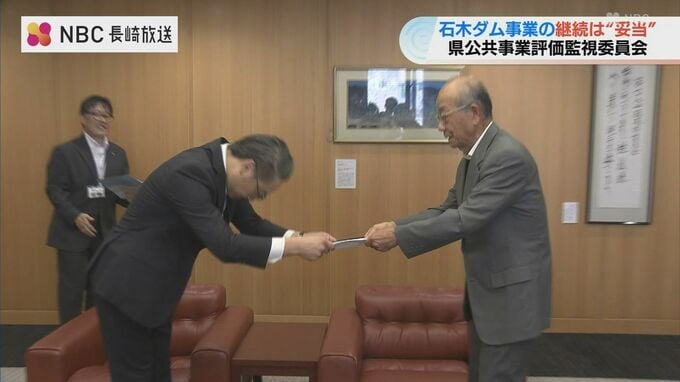 公共事業の必要性について再評価を行う長崎県公共事業評価監視委員会は2日、長崎県東彼杵郡川棚町の石木ダム事業の継続を妥当とする意見書を大石知事に提出しました。
