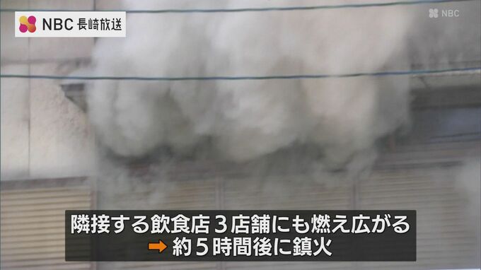 火は、隣接する飲食店3店舗にも燃え広がり、およそ5時間後に消し止められました。