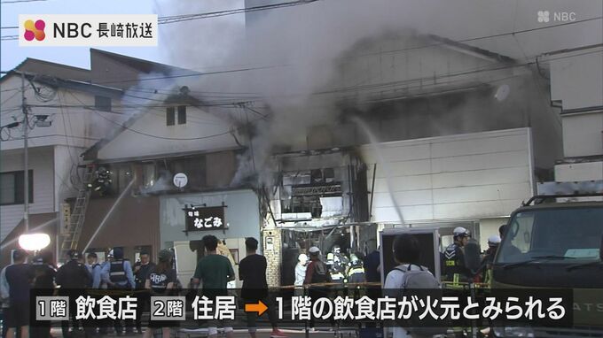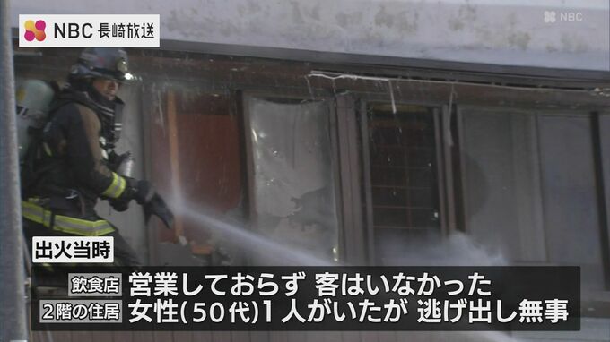 出火当時、飲食店は営業しておらず、客はいなかったということです。2階の住居に50代の女性1人がいましたが逃げ出し無事でした。