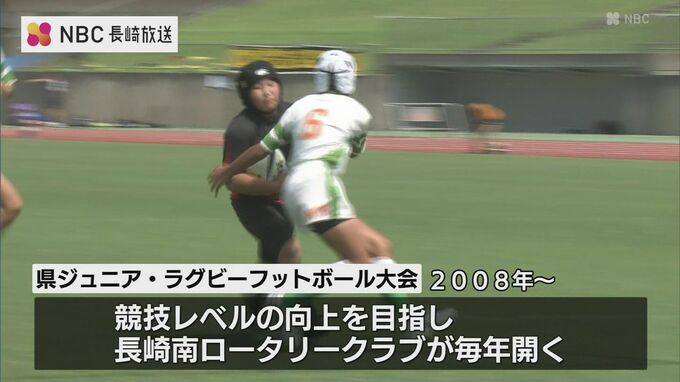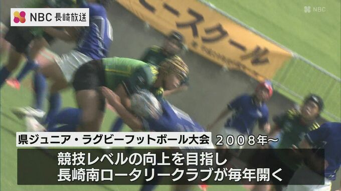 長崎県ジュニア・ラグビーフットボール大会は、競技レベルの向上を目指し、長崎南ロータリークラブが2008年から毎年開いていて、今年は、県内のラグビースクールや中学校から17チームおよそ200人が参加。