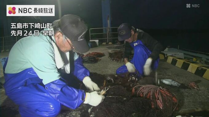 長崎県五島市下崎山町の崎山漁港では、8月24日、刺し網部会が今シーズン初めてのイセエビ漁を行いました。